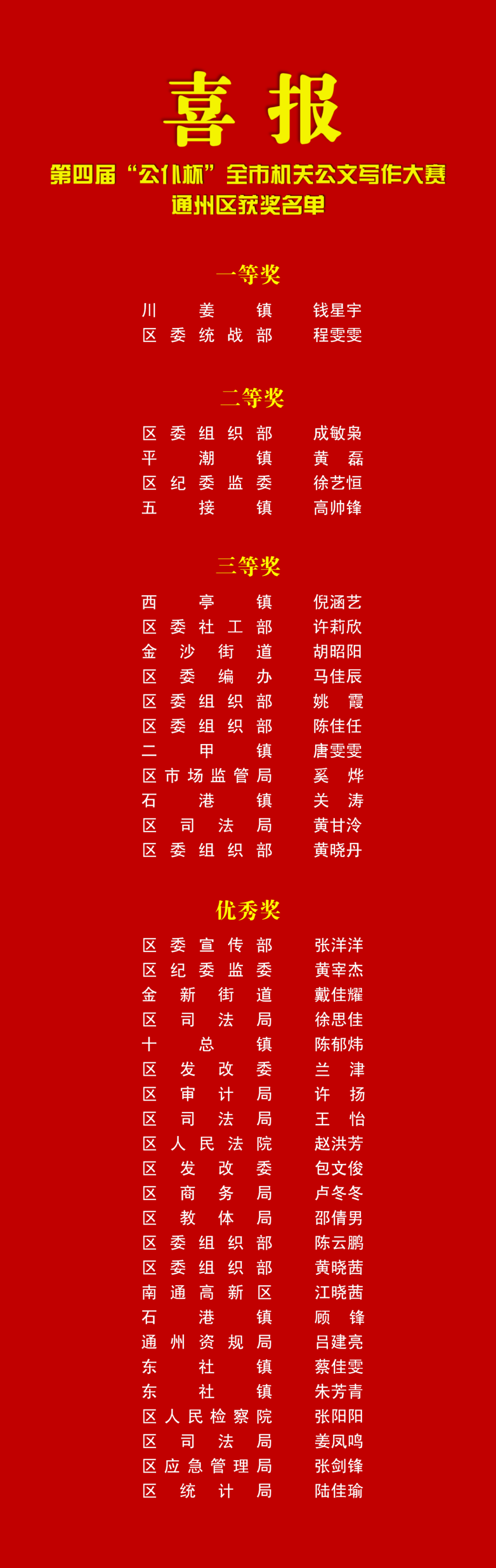 【喜報】通州區(qū)年輕干部在第四屆“公仆杯”全市機(jī)關(guān)公文寫作大賽上取得佳績